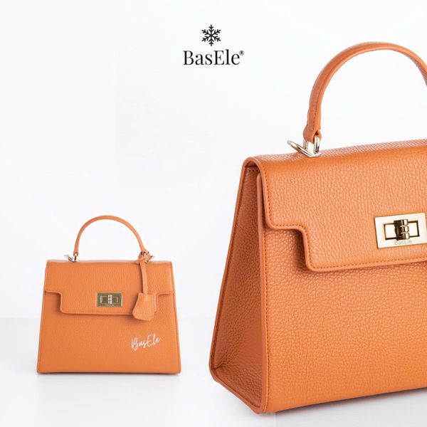 The petite, minimalist shape conveys a polished and sophisticated presence. Crafted from premium leather with a natural grain finish, the bag offers lasting beauty and durability, making it a distinctive accent for any style. The color palette evokes a range of emotions, deep black with quiet depth, warm orange full of vitality, and soft grey infused with a modern spirit.
