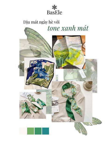 Với chất liệu lụa mềm mại, nhẹ nhàng, khăn lụa BasEle không chỉ mang lại cảm giác mát mẻ về thị giác mà còn tạo nên sự thoải mái khi tiếp xúc với làn da. Sắc xanh tinh tế hoà quyện cùng chất liệu lụa cao cấp đã góp phần tạo nên một phụ kiện thời thượng - vừa là điểm nhấn thanh lịch cho trang phục, vừa là lựa chọn tối ưu cho các nàng trong những ngày hè.