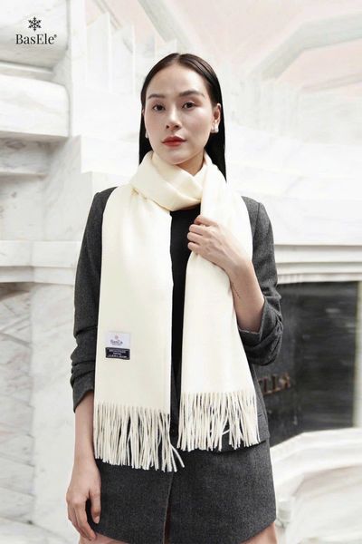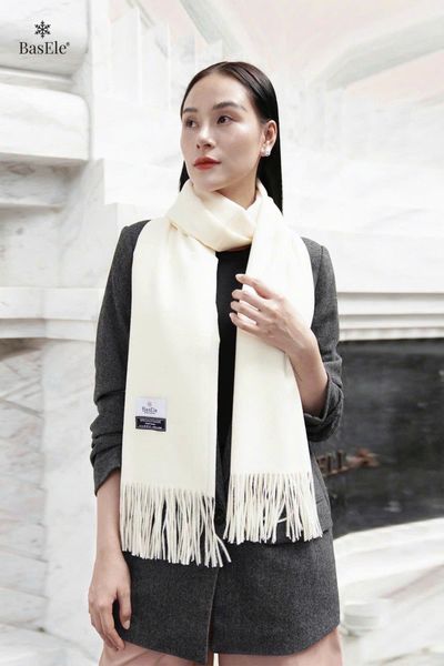 Khăn dạ trắng BasEle luôn mang một sức hút rất riêng, nhẹ nhàng, trong trẻo và tinh tế, đủ để làm sáng tổng thể mà vẫn giữ trọn sự thanh lịch vốn có.