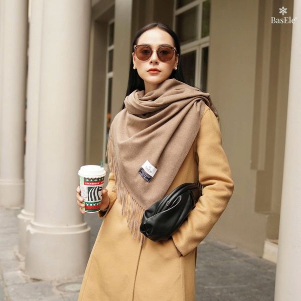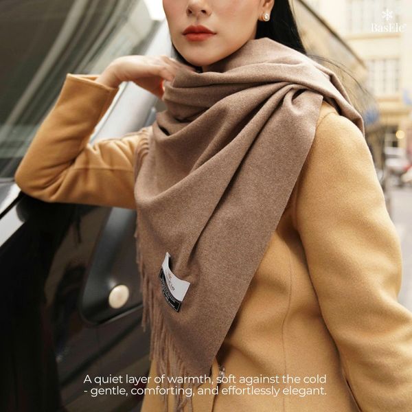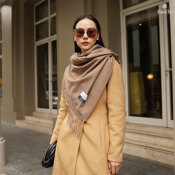 Sắc nâu của khăn dạ BasEle mang theo cảm giác ấm áp rất khẽ, như một tách trà nóng trong buổi sớm, như ánh nắng muộn còn vương lại trên vai áo.
