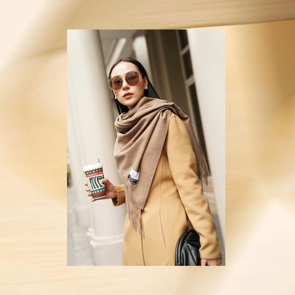 Chất dạ mềm và dày vừa đủ giúp chiếc khăn ôm nhẹ quanh cổ, giữ ấm mà không tạo cảm giác nặng nề. Từng nếp gấp rơi tự nhiên, tạo nên chuyển động mềm mại và thanh lịch trong mỗi bước đi. Gam nâu trầm ấm dễ dàng hòa vào nhiều phong cách. Sắc nâu ấy không nổi bật, nhưng luôn khiến tổng thể trở nên hài hòa hơn.