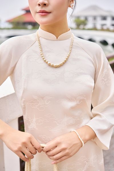 Tà áo rủ mềm, chỉ may mảnh và đều, phần cổ – nách – tay được xử lý kỹ để khi mặc luôn đứng dáng và tạo cảm giác sang trọng ngay từ cái nhìn đầu tiên.