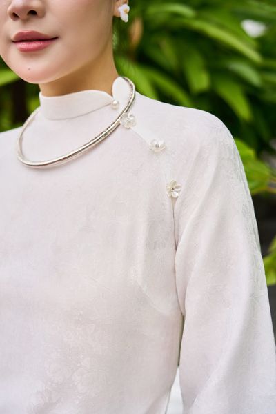 Tà áo rủ mềm, chỉ may mảnh và đều, phần cổ – nách – tay được xử lý kỹ để khi mặc luôn đứng dáng và tạo cảm giác sang trọng ngay từ cái nhìn đầu tiên.