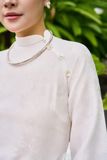 Áo Gấm tơ Kim cương Trắng kem và quần